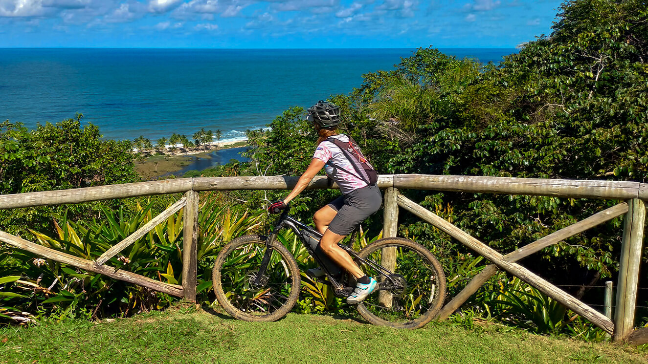 Verdade seja dita, esse é o nosso Mountain Bike tour preferido, pela diversidade de paisagens, visuais, banho numa lagoa encantada e também nível de dificuldade avançado do pedal. Considerada uma das maiores lagoas do Estado da Bahia, com um espelho da água de 14 km2 rodeados pela Mata Atlântica, a Lagoa Encantada é alimentada por três rios formando um conjunto de quedas, pequenas cascatas, poços e uma cachoeira de seis metros, ideal para um banho revigorante. É nesse local, próximo as cascatas e cachoeira, que faremos a primeira parada para banho e pic nic.